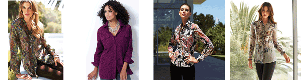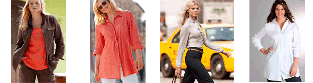 Ud over de helt klassiske skjorter som modellerne på de første 4 billeder, kommer der også masser af mønstre. Tern kommer meget frem, men det synes jeg nemt kan komme til at virke lidt voldsomt til Elaine. Derimod er modeller med striber på langs rigtig gode til Elaine, da striberne fremhæver de vertikale linjer. Derudover kommer vi til at se: